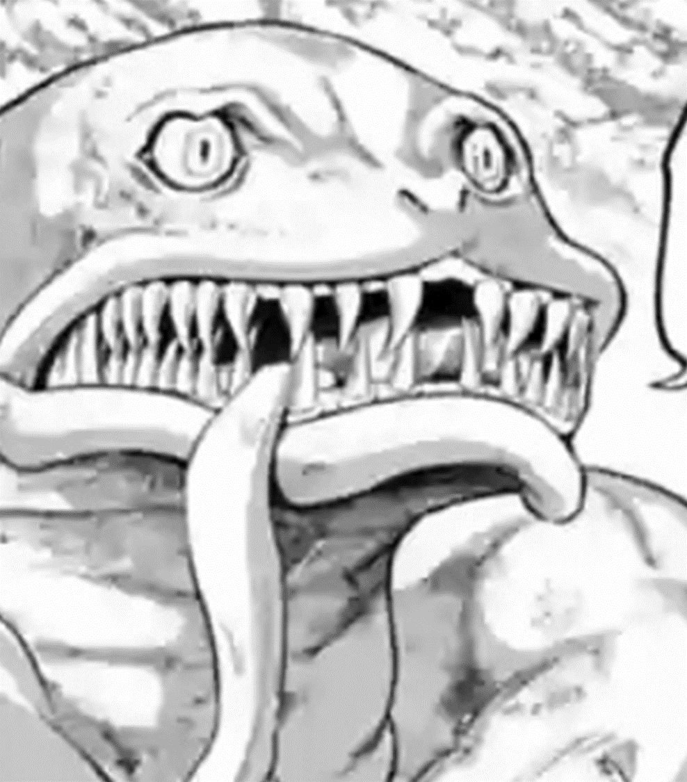 Python is a large, humanoid serpent. Because of how monstrous he looks, Python was discriminated against by Gods and Humans alike. Whenever he would go to terrorize Human settlements, Python would always wear a large cloak that had spikes along the back and a mask that would obscure his face, only leaving his eyes and mouth visible.