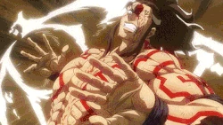 Godly Endurance & Stamina: Shiva has displayed immense fortitude and pain tolerance, being capable of quickly recovering each time Raiden landed a blow on him, and even stayed conscious and continue fighting even after losing three of his arms; Shiva was even capable of contending with Raiden blow-to-blow as he was enhanced by his Supramuscular Exoskeletal Mawashi Belt, henceforth foreshadowing a prove of survival of the deadly Yatagarasu, where he lost two more of his arms and received great damage to his face, which made him bleed and broke him two of his teeth. During his fight with Rudra, the sweat that flowed from their duel became a heavy rain that rained down upon the entire land, yet despite their fight possibly lasting for hours, Shiva showed no signs of dehydration by the end of it, and moreover even outlasted his friend's own great endurance. After going into his Tandava Karma, the Destroyer kept contending with Raiden in combat, where he had to endure getting burnt up by his own flames.